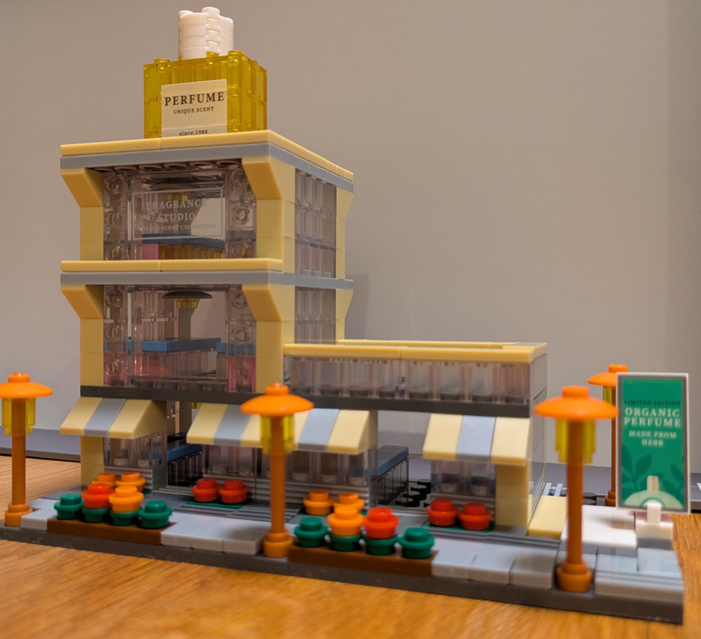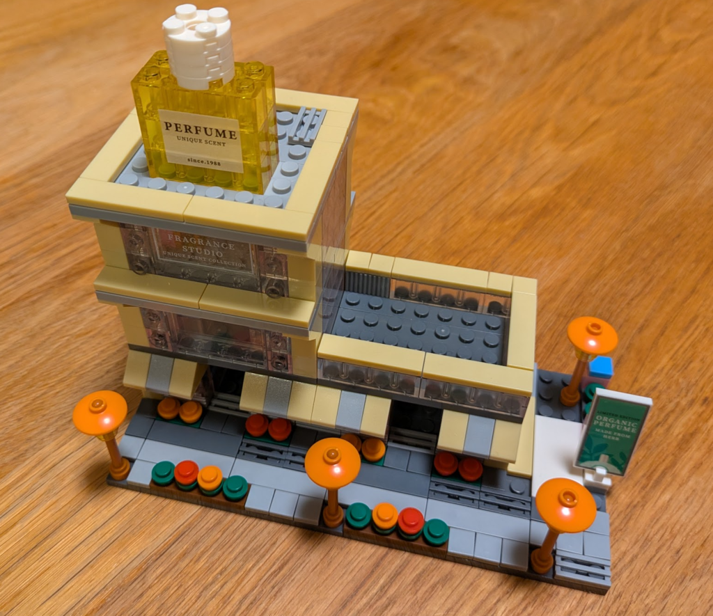 「香水、めちゃくちゃ売れたので、隣接地も取得してテラス付きの2号館建てちゃいました」って感じですかね。商売繁盛な感じで良いですね!ははは。