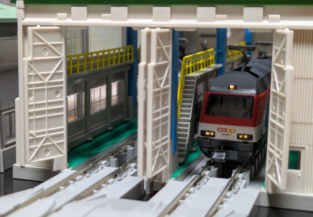 といいつつ、同時期に、スイスの鉄道駅に採用されている時計ブランドのモンディーンの広告塗装機もホビーセンターカトーから発売されているのですが、そちらは未導入です。
