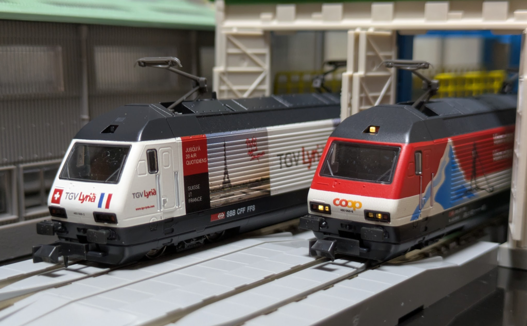 我が家にいる別のRe460、TGV Lyria記念塗装車と。
