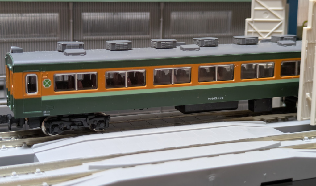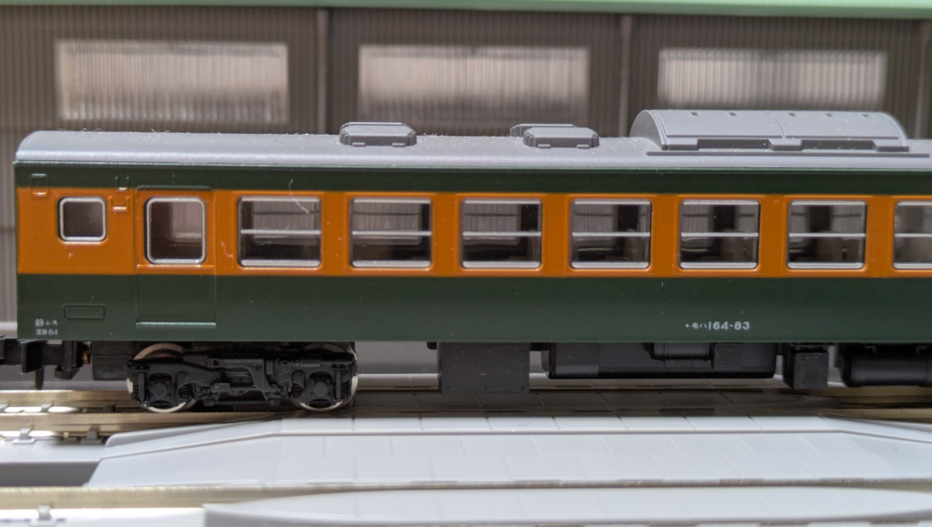TOMIXからも2024年の年末くらいに急行東海仕様の165系が発売されましたが、あちらは通常仕様なので、等級帯の表現はありません。床下もグレーです。被らない製品化で、ファンとしては有難いです。