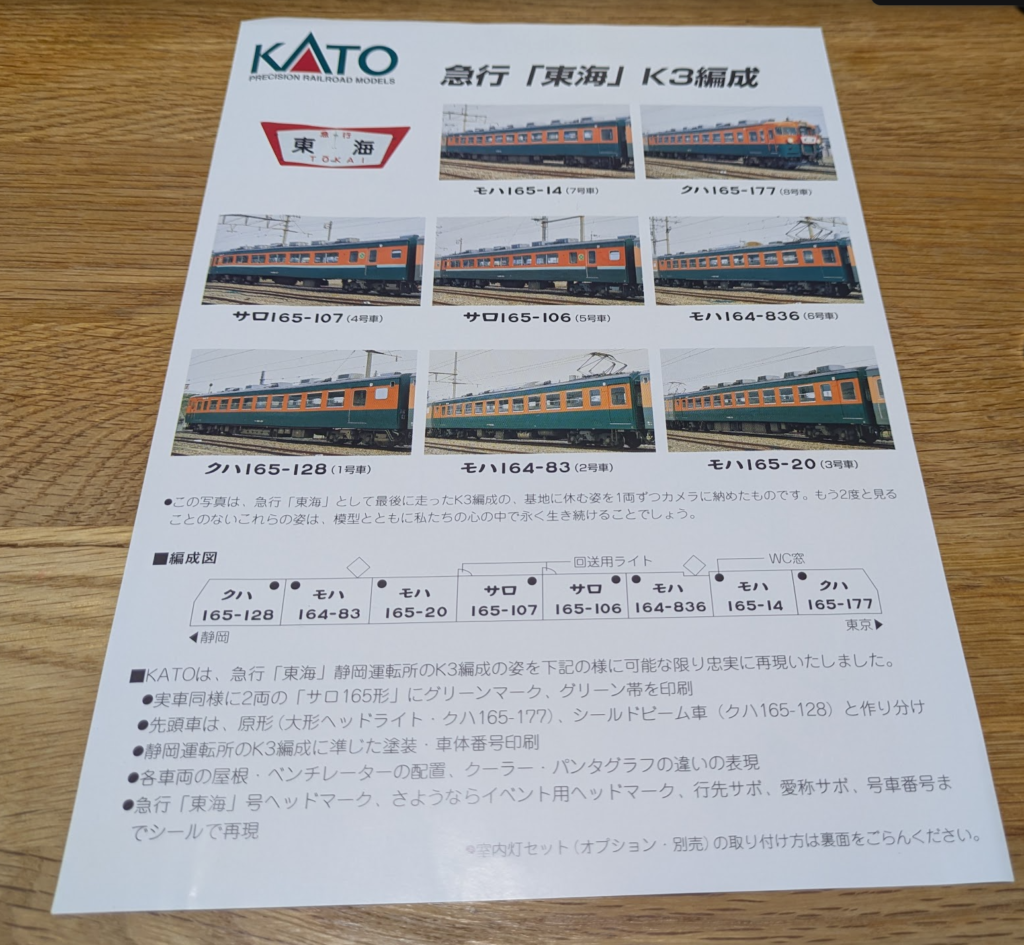 話がだいぶ脱線してしまいましたが、KATOの大垣夜行製品化パンフレットを見て、KATOの東海道筋の165系といえば、、、ということで、久しぶりに棚から出して眺めてみました。