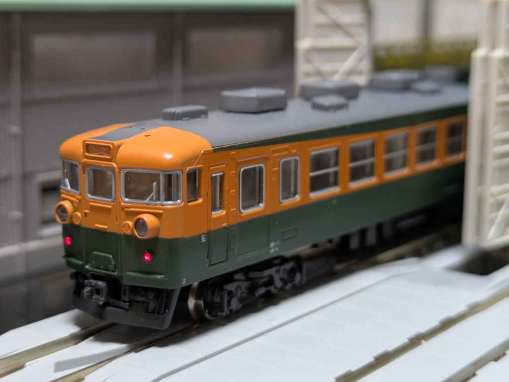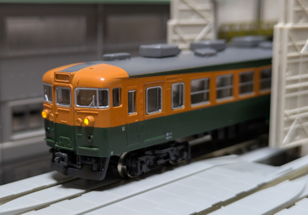 さて、模型の方を。まぁ30年前の製品なので、、最新の仕様と比べてしまうと種別表示?(おでこのところの急行とか普通とか表示されるところ)が点灯しないとか、ライトのレンズ表面のディティールがないとか、色々ありますが、Nゲージですし、そんなに気にならないですね。