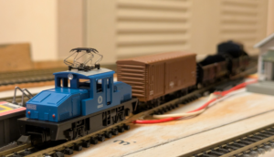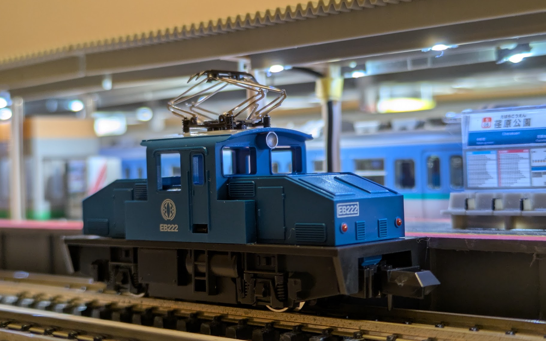 動力は非常にスムーズでヌルヌルと走ります。ただ、トラクションタイヤはついていないので、貨車を多数連結して急こう配はツライものがあります。(空転して進めない)